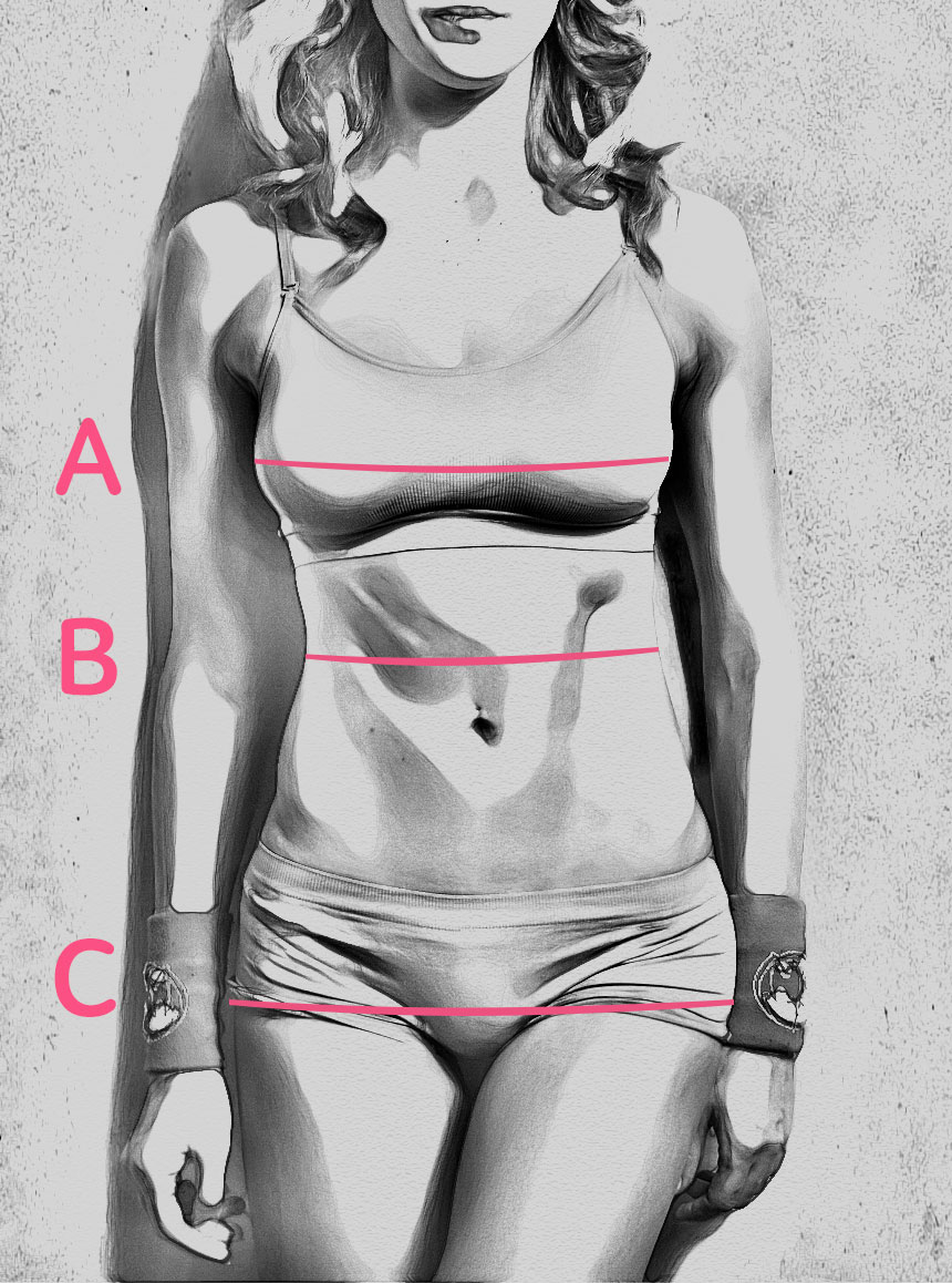 Measurements should be taken on top of underwear or on bare skin. The tape meter should surround the area measured but should not be too tight.